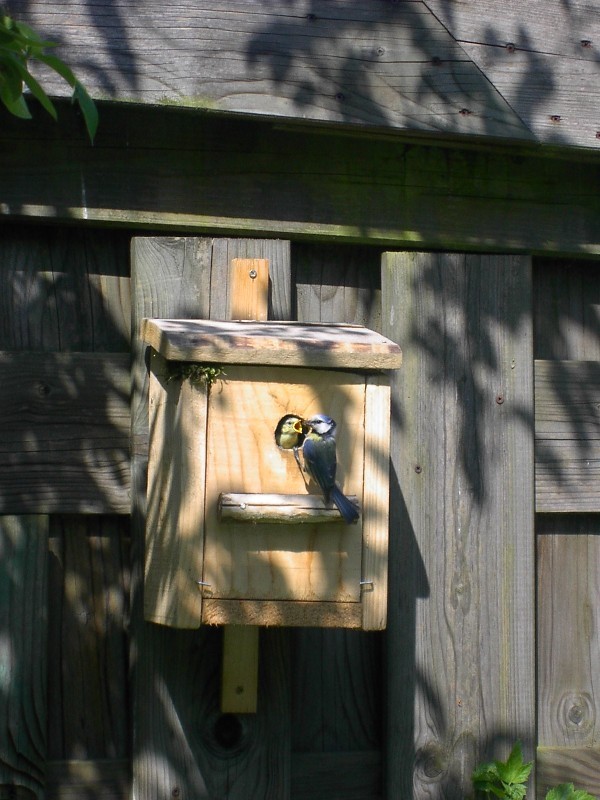 In der Osterferienwerkstatt haben wir in der Märchengarten-Naturwerkstatt einen Nistkasten gebaut. Bald zogen die ersten Bewohner ein - ein Meisenpaar. In den vergangenen Wochen hörten wir ein fröhliches Gezwitscher. Wir hatten Glück und konnten Vogelkindern und Eltern mit der Kamera begegnen. Inwzischen können die Vogelkinder fliegen und entdecken die Gegend.